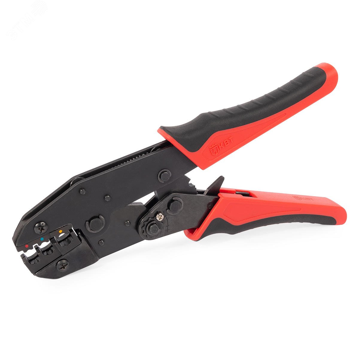 Классическая конструкция, надежная механика. Материал корпуса: качественная 3-миллиметровая сталь. Храповой механизм, обеспечивающий блокировку обратного хода до завершения полного цикла опрессовки. Клещи предназначены для опрессовки с различных видов изолированных кабельных наконечников и гильз, имеющих красную, синюю и желтую манжеты. Они подходят для работы с наконечниками и гильзами следующих типов: НКИ, НКИ(н), ВНКИ, НВИ, НИК, НШКИ, НШПИ, ГСИ, ГСИ(н), ГСИ-П, ВРПИ-М, ВРПИ-П, ВРШИ-М(н), ВРШИ-П(н), РПИ-М(н) и РПИ-П(н). Сечение обрабатываемых проводов может составлять от 0,5 до 6 миллиметров квадратных.