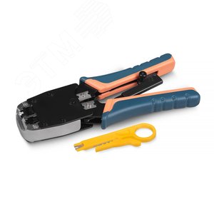 Инструмент обжимной для RJ-45 (8р8с). RJ-11/12 (6р6с. 6р4с. 6р2с). профессиональный. с храповым механизмом