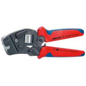 Самонастраивающиеся пресс-клещи для опрессовки контактных гильз для опрессовки контактных гильз (по стандарту DIN 46 228 часть 1 + 4). саморегулирующаяся настройка на нужный размер контактной гильзы - исключаются ошибки опрессовки из-за неверного выбора опрессовочной плашки. Вставка втулок в клещи спереди. неизменно высокое качество опрессовки за счет принудительной блокировки (с отпиранием). усилие опрессовки точно откалибровано изготовителем. высокая передача усилия благодаря рычажному механизму, для снижения усталости при работе. инструмент удобен в использовании благодаря продуманной конструкции и малому весу. oпрессовка в диапазоне поперечных сечений 0,08 -10,0 мм.кв и 16,0 мм.кв в одной матрице. с рычагом выбора для установки диапазона опрессовки 0,08 - 10 или 16,0 мм.кв. Для двойных втулок 2 x 10 мм.кв до диаметр 6,6 мм