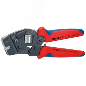 Самонастраивающиеся пресс-клещи для опрессовки контактных гильз для опрессовки контактных гильз (по стандарту DIN 46 228 часть 1 + 4). саморегулирующаяся настройка на нужный размер контактной гильзы - исключаются ошибки опрессовки из-за неверного выбора опрессовочной плашки. Вставка втулок в клещи спереди. неизменно высокое качество опрессовки за счет принудительной блокировки (с отпиранием). усилие опрессовки точно откалибровано изготовителем. высокая передача усилия благодаря рычажному механизму, для снижения усталости при работе. инструмент удобен в использовании благодаря продуманной конструкции и малому весу. oпрессовка в диапазоне поперечных сечений 0,08 -10,0 мм.кв и 16,0 мм.кв в одной матрице. с рычагом выбора для установки диапазона опрессовки 0,08 - 10 или 16,0 мм.кв. Для двойных втулок 2 x 10 мм.кв до диаметр 6,6 мм