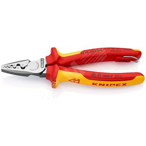 Пресс-клещи для обжима контактных гильз VDE 1000V 9 гнезд 025-16мм (AWG 23-5) L=180мм диэлектрические двухкомпонентные рукоятки крепление для страховк