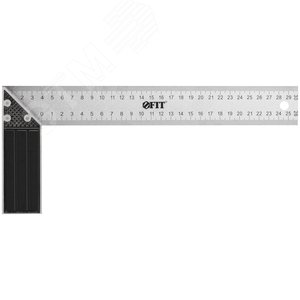 Угольник столярный FIT IT предназначен для проверки углов 90 и 45 градусов при выполнении разметочных работ. Двусторонняя рифленая гравированная износостойкая метрическая шкала способствует повышению качества работы. Фрезеровка рукоятки обеспечивает точность угла 1,0 мм/м. Линейка из нержавеющей стали с толщиной 1,0 мм обладает высокой жесткостью и износостойкостью. Литое алюминиевое основание с дополнительным ребрами жесткости имеет малый вес в сочетании с высокой прочностью. Трехточечное крепление полотна с основанием способствует избежанию люфтов. Отверстие в линейке позволяет хранить инструмент в подвешенном положении.