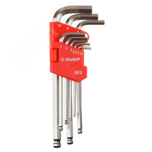 Набор ключей ''Мастер'' имбусовые длинные с шариком, Cr-V, сатинированное покрытие, пластиковый держатель, HEX 1,5-10мм, 9 пред