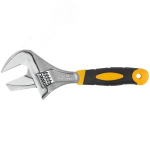 Ключ разводной ''Техно'' FIT HQ — универсальный инструмент для сантехнических и слесарных работ, заменяющий целый набор обычных рожковых ключей! Ключ изготовлен из штампованной закаленной хром-ванадиевой (CrV) стали и обладают высокой прочностью и износостойкостью. Узкие губки повышают эффективность работы в труднодоступных местах. Экстраувеличенный рабочий диапазон губок позволяет захватывать предметы больших размеров. Гравированная размерная шкала дает возможность точно открывать нужный размер. Усиленный червячный механизм устойчив к интенсивным нагрузкам. Хромированное покрытие предотвращает коррозию. Пластиковая прорезиненная рукоятка предотвращает проскальзывание во время работы и обеспечивает надежный хват. Отверстие в рукоятке позволяет хранить инструмент в подвешенном положении.