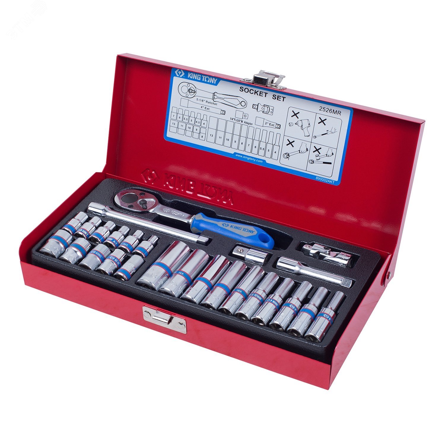 Набор торцевых головок с принадлежностями 1/4', шестигранные, 4-13 мм, 26 предметов