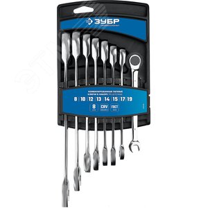 Набор комбинированных гаечных ключей трещоточных 8 шт, 8 - 19 мм