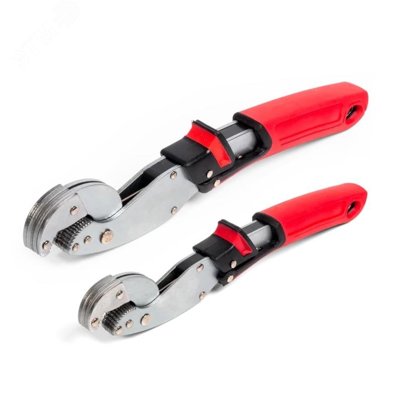 Мультиразмерные самофиксирующиеся гаечные ключи предназначены для монтажа резьбовых соединений при проведении слесарно-монтажных, авторемонтных, сантехнических работ. Состав набора - мультиразмерный ключ МК 10–19 мммультиразмерный ключ МК 13–24 мм мультиразмерный ключ МК 10–19 мм мультиразмерный ключ МК 13–24 мм. Материал ключей - хром-ванадиевая сталь. Покрытие - матовое никелирование. Захват крепежа любого типа и размера в пределах диапазона. Автоматическая настройка на нужный размер крепежа. Специальная конструкция не требует переустановки ключа в процессе работы. Подпружиненный рычаг для раскрытия ключа. Насечки на губках для надежного захвата крепежа. Специальная конструкция ключа позволяет производить работы в ограниченном пространстве и труднодоступных местах. Возможность работы одной рукой. Эргономичная нескользящая двухкомпонентная рукоятка со вставками из мягкой термопластрезины. Отверстие в рукоятке для подвешивания. Упаковка - пластиковый блистер. Вес набора - 595 г