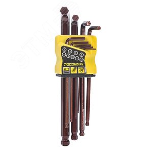 Набор угловых шестигранных ключей с шаром 9 штук 1,5, 2, 2,5, 3, 4, 5, 6, 8, 10