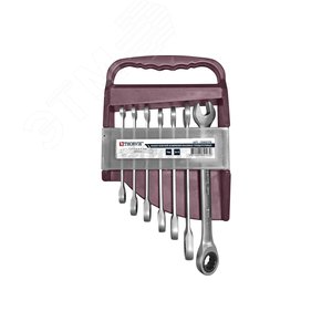 Набор ключей гаечных комбинированных трещоточных на держателе, 8-19 мм, 7 предметов