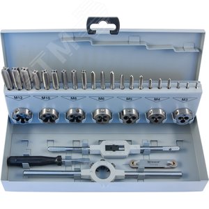 Набор метчиков трехпроходных ручных универсальных и плашек круглых ручных серий COMBO М3-М12, HSS-G, 32 предмета