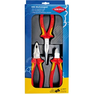 Набор ШГИ VDE 1000V в ложементе 3 предмета комплектация: 0306180 плоскогубцы 180 мм 2616200 длинногубцы 200 мм 7006160 бокорезы 160 мм диэлектрические