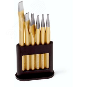 Набор инструментов по металлу, 6 предметов (Зубила плоские 125/150 мм, Крейцмейсель 125 мм, Кернер 4 мм, Пробойники 3/4 мм, подставка)