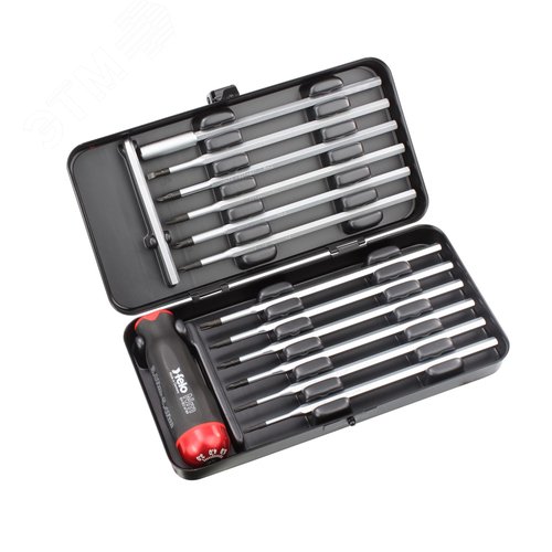Динамометрическая рукоятка серии Nm с набором сменных стержней предназначена для сборки электротехнических соединений с заданным значением крутящего момента силы. Диапазон затягивания от 3.0 до 5.4 Нм (с шагом в 0,1 Нм). Бесшовная рукоятка имеет усовершенствованную эргономичную форму, не проскальзывает и снижает утомляемость. С рукояткой применяются сменные стержни длиной 170 мм. Важно: нагружать отвертку следует равномерно, плавно и по часовой стрелке. Достижение заданного момента затяжки сопровождается щелком. Как только заданный момент затяжки достигнут, необходимо прекратить дальнейшую нагрузку на отвертку. Механизм блокируется при вращении против часовой стрелки (на ослабление винтов). Если стрелка переместилась за пределы шкалы, повернув регулировочный ключ по часовой стрелке, повторно выровняйте шкалу и стрелку.