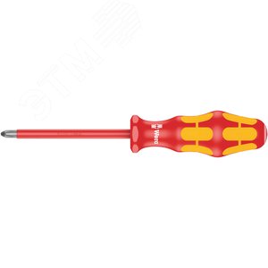Отвёртка Wera VDE с многокомпонентной ручкой Kraftform для работы в быстром и щадящем режиме - твердые зоны ручки для высокой скорости работы, в то время как мягкие зоны ручки обеспечивают передачу больших моментов силы. Поштучная проверка в водяной бане под напряжением 10000 В для безопасной работы на оборудовании с максимально допустимым напряжением 1000 В. Идентификаторы инструментов ''Take it easy'' с цветовой кодировкой профиля и гравировкой размера - для простого и быстрого отбора требуемого инструмента. Наконечники Lasertip отверток Wera обработаны лазером до получения микроскопической шероховатости. Такая поверхность буквально ''вгрызается'' в головку винта. О непроизвольном выскальзывании отвёртки можно забыть. Шестигранный край ручки предотвращает надоедливое перекатывание отвёртки на рабочем месте.