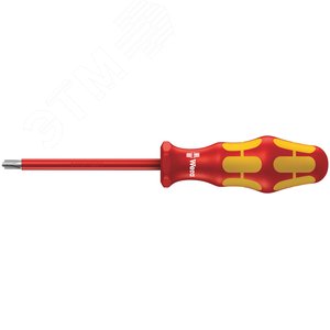 Отвёртка Wera VDE с многокомпонентной ручкой Kraftform Plus для работы в быстром и щадящем режиме - твердые зоны ручки для высокой скорости работы, в то время как мягкие зоны ручки обеспечивают передачу больших моментов силы. Комбинированный профиль ''шлиц/Phillips'', прежде всего для работы с присоединительными зажимами, предохранительными коробками, переключателями, реле. Инструменты проверены поштучно по стандарту IEC 60900. Поштучная проверка в водяной бане под напряжением 10000 В для безопасной работы на оборудовании с максимально допустимым напряжением 1000 В. Шестигранный край ручки предотвращает надоедливое перекатывание отвёртки на рабочем месте.