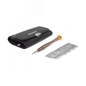Набор отверток REXANT 25 в 1 оптимален для выполнения прецизионных работ в электронике и электромеханике, ремонта большинства видов и моделей популярной портативной техникис(мартфонов, часов, планшетных ПК, игровых приставок, фотокамер, электронных сигарет). Комплект пригодится для ремонта техники Apple. Инструменты выполнены из качественной стали, обладающей высокой прочностью к механическим повреждениям и образованию ржавчины. Отвертка эргономичной формы обладает вращающейся шляпкой. Набор инструментов поставляется в футляре для удобного хранения и транспортировки.