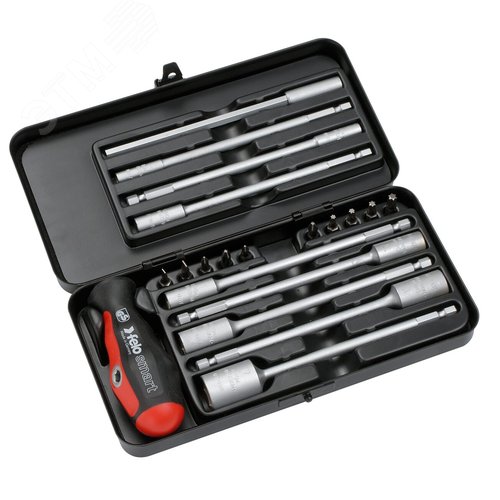 Набор инструментов Felo серии SMART используется при проведении слесарных, ремонтных, авторемонтных и монтажных работах. Рукоятка Felo с технологией SMART применяется в работе со сменными стержнями Felo с различными типами крепежа как в быту, так и при ежедневном профессиональном использовании. Инструмент используется как Т-образная отвертка для придания большего усилия на крепеж. Двухкомпонентная ручка с противоскользящим покрытием более эргономичная, снижает нагрузку и утомляемость, а также увеличивает комфорт и максимальный крутящий момент. Прямая фиксация бит и насадок позволяет инструменту с легкостью работать в труднодоступных местах.