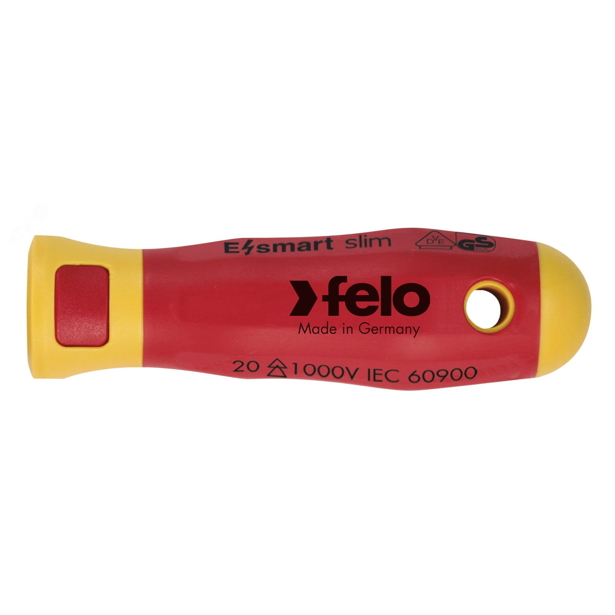 Рукоятка диэлектрическая Felo серии E-Smart Slim применяется в комплекте с диэлектрическими стержнями Felo и используются в различных электроустановках, электрошкафах, счетчиках. Бесшовная рукоятка E-Smart Slim выполнена по технологии двухкомпонентной ручки, имеет мягкое, но устойчивое к царапинам и ГСМ внешнее покрытие для обеспечения максимального комфорта при работе. Рукоятка тоньше и длиннее для обеспечения безопасного рабочего расстояния и лучшего обзора работы в труднодоступных местах. Рукоятка E-Smart Slim оснащена механизмом быстрого отсоединения сменных стержней с защитой от случайного их извлечения и вставным вращающимся колпачком для точных работ с особо чувствительными устройствами. Рукоятка имеет уровень безопасности в соответствии со стандартами DIN EN 60900, который требует, чтобы каждый инструмент проходил индивидуальное тестирование при напряжении 10.000 Вольт.
