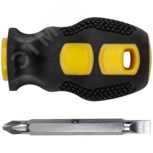 Отвертка c переставным жалом ''коротыш'', CrV сталь, прорезиненная ручка 6х40 мм PH2/SL6