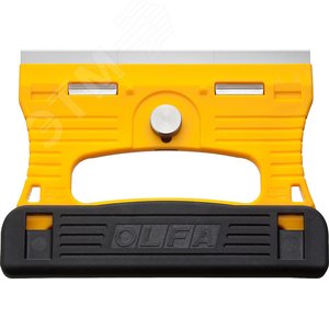 Тонкая конструкция скребка OLFA GSR-1 позволяет наклонять скребок максимально к плоской стеклянной поверхности. Рукоятка и защитная крышка лезвия изготовлены из усиленного фибергласом пластика который известен своей прочностью, жесткостью и устойчивостью к ацетону. Не только лезвие, но и пластина, удерживающая лезвие, и винт изготовлены из нержавеющей стали, поэтому скребок для стекла идеально подходит для работы с водой и жидкостью для мытья посуды.