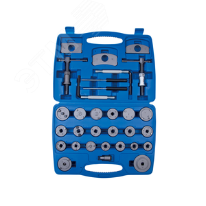 Предназначен для работ по замене тормозных колодок - утапливание тормозного цилиндра методом вкручивания. Применение - BMW, Ford, Volkswagen, Audi, Porsche, Saab, Opel, Volvo, Jaguar, Citroen, Peugeot, Renault, Lauxhall, Lancia, Alfa romeo, Fiat, Nissan, Honda, Subaru, Toyota, Mitsubishi и другие автомобильные марки. Применяется на станциях технического обслуживания (СТО), автосервисах, автомастерских, в промышленности, производство, строительство, бытовое применение. Приспособление изготовлено из кованой инструментальной стали. Дополнительная закалка придает особую прочность, а оксидированное покрытие защищает инструмент от коррозии. Конструкция приспособления имеет муфту с упорной скобой и силовой регулирующий винт, позволяющие контролировать соосность при демонтаже. Упорная шайба оснащена магнитом для удержания адаптеров.