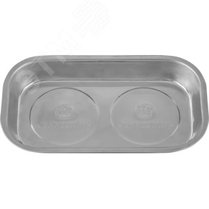 Поддон прямоугольной формы 240х140 мм, применяется для удержания во время ремонта техники небольших железосодержащих деталей и инструмента (болты, гайки, биты, торцевые головки, ключи и т.д.). В поддоне надежно удерживаются детали и инструмент в горизонтальном, вертикальном и перевернутом положении. Суммарная масса удерживаемых деталей может составлять до 4 кг, в вертикальном положении тарелки и 3 кг в перевернутом, благодаря применению двух мощных неодимовых магнитов. Крышки магнитов, изготовленные из мягкой резины, защищают поверхности от возможных повреждений.