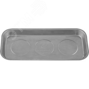 Поддон прямоугольной формы 360х165 мм, применяется для удержания во время ремонта техники железосодержащих деталей и инструментов средних размеров (болты, гайки, шайбы, ключи, торцевые головки, ШГИ и т.д.). В поддоне надежно удерживаются детали в горизонтальном, вертикальном и перевернутом положении. Суммарная масса удерживаемых деталей может составлять до 5.5 кг, в вертикальном положении тарелки и 4.4 кг в перевернутом, благодаря применению трех мощных неодимовых магнитов. Крышки магнитов, изготовленные из мягкой резины, защищают поверхности от возможных повреждений.