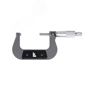 Микрометр МК- 75 0,01 КЛБ* — средство для измерения наружных линейных размеров. Основанием микрометра является скоба, а преобразующим устройством служит винтовая пара, состоящая из микрометрического винта и микрометрической гайки, укреплённой внутри стебля их часто называют микропарой. В скобу запрессованы пятка и стебель. Измеряемую деталь охватывают торцевыми измерительными поверхностями микровинта и пятки. Барабан присоединён к микровинту с помощью колпачка в котором находится корпус трещотки. Чтобы приблизить микровинт к пятке, вращают барабан трещотку по часовой стрелке (от себя), а для обратного движения микровинта (от пятки) барабан вращают против часовой стрелки (на себя). Закрепляют микровинт в требуемом положении стопором. Верхний предел измерений 75 мм. Цена деления шкалы барабана 0,01 мм. Производство бренда Калиброн.