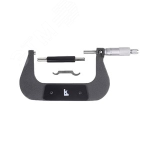 Микрометр МК- 100 0,01 КЛБ* — средство для измерения наружных линейных размеров. Основанием микрометра является скоба, а преобразующим устройством служит винтовая пара, состоящая из микрометрического винта и микрометрической гайки, укреплённой внутри стебля их часто называют микропарой. В скобу запрессованы пятка и стебель. Измеряемую деталь охватывают торцевыми измерительными поверхностями микровинта и пятки. Барабан присоединён к микровинту с помощью колпачка в котором находится корпус трещотки. Чтобы приблизить микровинт к пятке, вращают барабан трещотку по часовой стрелке (от себя), а для обратного движения микровинта (от пятки) барабан вращают против часовой стрелки (на себя). Закрепляют микровинт в требуемом положении стопором. Верхний предел измерений 100 мм. Цена деления шкалы барабана 0,01 мм. Производство бренда Калиброн.