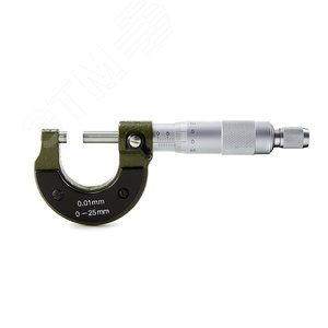 Микрометр МК- 125 0,01 КЛБ* — средство для измерения наружных линейных размеров. Основанием микрометра является скоба, а преобразующим устройством служит винтовая пара, состоящая из микрометрического винта и микрометрической гайки, укреплённой внутри стебля их часто называют микропарой. В скобу запрессованы пятка и стебель. Измеряемую деталь охватывают торцевыми измерительными поверхностями микровинта и пятки. Барабан присоединён к микровинту с помощью колпачка в котором находится корпус трещотки. Чтобы приблизить микровинт к пятке, вращают барабан трещотку по часовой стрелке (от себя), а для обратного движения микровинта (от пятки) барабан вращают против часовой стрелки (на себя). Закрепляют микровинт в требуемом положении стопором. Верхний предел измерений 125 мм. Цена деления шкалы барабана 0,01 мм. Производство бренда Калиброн.