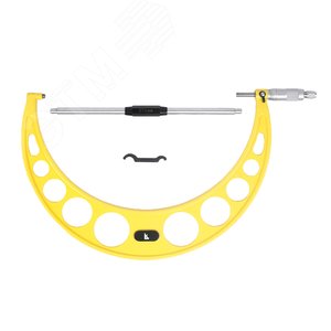 Микрометр МК- 300 0,01 КЛБ* — средство для измерения наружных линейных размеров. Основанием микрометра является скоба, а преобразующим устройством служит винтовая пара, состоящая из микрометрического винта и микрометрической гайки, укреплённой внутри стебля их часто называют микропарой. В скобу запрессованы пятка и стебель. Измеряемую деталь охватывают торцевыми измерительными поверхностями микровинта и пятки. Барабан присоединён к микровинту с помощью колпачка в котором находится корпус трещотки. Чтобы приблизить микровинт к пятке, вращают барабан трещотку по часовой стрелке (от себя), а для обратного движения микровинта (от пятки) барабан вращают против часовой стрелки (на себя). Закрепляют микровинт в требуемом положении стопором. Верхний предел измерений 300 мм. Цена деления шкалы барабана 0,01 мм. Производство бренда Калиброн.