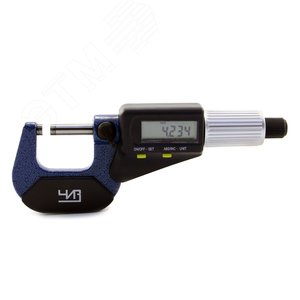 Микрометр МКЦ- 100 0,001 электр. 2-кн. с пов. ЧИЗ - цифровые микрометры для измерения наружных линейных поверхностей. Используется в области малых размеров с низкой погрешностью (от 2 мкм до 50 мкм в зависимости от класса точности инструмента и измеряемых диапазонов). Преобразовательным механизмом микрометра является микропара винт-гайка. Принцип измерения микрометром построен на перемещение винта вдоль оси при вращении его в неподвижной гайке. Считывание показаний происходит по средствам электронного дисплея, куда они выводятся в готовом виде. Цифровой блок обладает функцией установки инструмента на 'нуль' и смены системы исчисления с метрической на дюймовую. Верхний предел измерений 100 мм. Цена деления шкалы барабана 0. 001 мм. Производство бренда ЧИЗ.