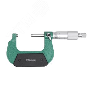 Микрометр МК- 50 0,01 МИК - средство для измерения наружных линейных размеров. Основанием микрометра является скоба, а преобразующим устройством служит винтовая пара, состоящая из микрометрического винта и микрометрической гайки, укреплённой внутри стебля их часто называют микропарой. В скобу запрессованы пятка и стебель. Измеряемую деталь охватывают торцевыми измерительными поверхностями микровинта и пятки. Барабан присоединён к микровинту с помощью колпачка в котором находится корпус трещотки. Чтобы приблизить микровинт к пятке, вращают барабан трещотку по часовой стрелке (от себя), а для обратного движения микровинта (от пятки) барабан вращают против часовой стрелки (на себя). Закрепляют микровинт в требуемом положении стопором.Верхний предел измерений 50 мм.Цена деления шкалы барабана 0.01 мм.Производство бренда Micron.