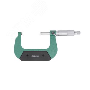 Микрометр МК- 75 0,01 МИК - средство для измерения наружных линейных размеров. Основанием микрометра является скоба, а преобразующим устройством служит винтовая пара, состоящая из микрометрического винта и микрометрической гайки, укреплённой внутри стебля их часто называют микропарой. В скобу запрессованы пятка и стебель. Измеряемую деталь охватывают торцевыми измерительными поверхностями микровинта и пятки. Барабан присоединён к микровинту с помощью колпачка в котором находится корпус трещотки. Чтобы приблизить микровинт к пятке, вращают барабан трещотку по часовой стрелке (от себя), а для обратного движения микровинта (от пятки) барабан вращают против часовой стрелки (на себя). Закрепляют микровинт в требуемом положении стопором.Верхний предел измерений 75 мм.Цена деления шкалы барабана 0.01 мм.Производство бренда Micron.