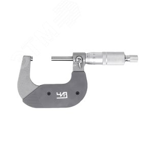 Микрометр МК- 50 0,01 ЧИЗ* — средство для измерения наружных линейных размеров. Основанием микрометра является скоба, а преобразующим устройством служит винтовая пара, состоящая из микрометрического винта и микрометрической гайки, укреплённой внутри стебля их часто называют микропарой. В скобу запрессованы пятка и стебель. Измеряемую деталь охватывают торцевыми измерительными поверхностями микровинта и пятки. Барабан присоединён к микровинту с помощью колпачка в котором находится корпус трещотки. Чтобы приблизить микровинт к пятке, вращают барабан трещотку по часовой стрелке (от себя), а для обратного движения микровинта (от пятки) барабан вращают против часовой стрелки (на себя). Закрепляют микровинт в требуемом положении стопором. Верхний предел измерений 50 мм. Цена деления шкалы барабана 0,01 мм. Производство бренда ЧИЗ.