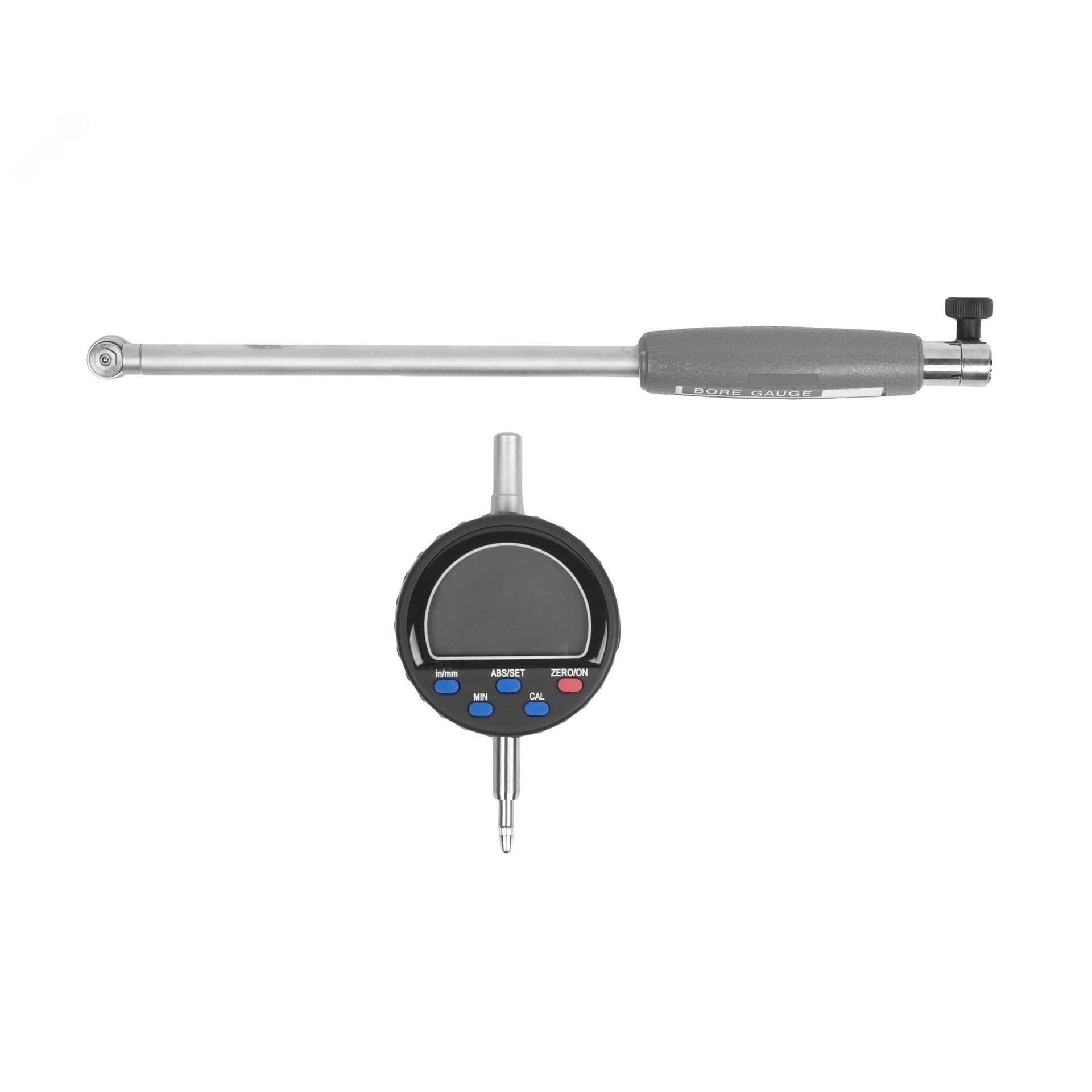 Нутромер индикаторный повышенной точности НИ электронный -прецизионный прибор для определения внутренних размеров изделий (расстояния между параллельными плоскостями, диаметры отверстий, пазов и других поверхностей). Конструкция нутромера индикаторного (НИ) представляет собой сочетание индикатора часового типа (ИЧ) или цифрового индикатора (ИЦ) и рычажную систему нутромера - подвижного и неподвижного измерительных стержней, и сменных измерительных вставок. Внутри корпуса нутромера располагается система рычагов, перемещение которых фиксируется отклонениями стрелки индикатора. Сброс показаний на ноль. Переключение между метрической и дюймовой системами.