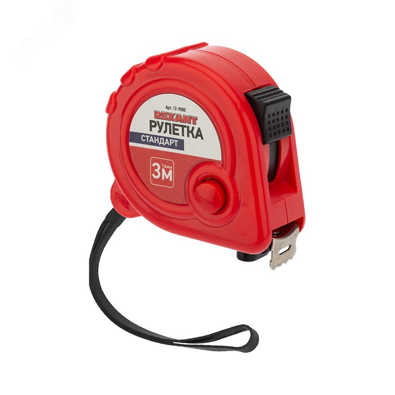 Измерительная рулетка REXANT 'Стандарт' необходима при проведении измерительных работ в строительстве, хозяйстве, ландшафтных и геодезических исследованиях. Эргономичный корпус выполнен из ударопрочного пластика. Для удобства использования рулетки предусмотрены кнопки стопора и фиксации тормоза. Полотно обладает удобным зацепом с отверстием посередине. На корпусе расположена клипса-зажим для фиксации рулетки на ремне, кармане или поясной сумке. Ремешок позволяет надевать инструмент на запястье, чтобы освободить руки для работы.