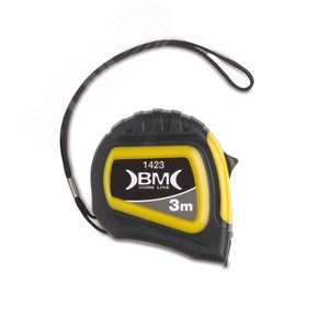 Измерительная рулетка в корпусе из двухкомпонентного материала ABS и резины армированный, дюралюминием, лента шириной 19 мм из закаленной и окрашенной стали C60, стопорный демпфер, подвижный упор для внутреннего и внешнего измерения, класс точности - II (второй).