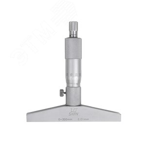 Глубиномер микрометр. ГМ-300 0.01 SHAN - предназначен для измерения глубины пазов и высоты уступов до 300 мм. Состоит он из микрометрической головки, стебля, основания и наконечника, покрытого твердым сплавом. Микрометрическая головка аналогична барабану микрометра. Считывают размеры при пользовании этим инструментом так же, как и при замерах микрометром. Цифры у штрихов стебля и барабана нанесены в обратном порядке по сравнению с микрометрами, так как чем больше глубина, тем дальше выдвинут микровинт. Материал изготовления – углеродистая или нержавеющая сталь. Хранить прибор следует в специальном пластиковом или деревянном кейсе, который поставляется в наборе. Глубиномеры должны эксплуатироваться при температуре 20±15°С и относительной влажности воздуха не более 80% при температуре 25°С. Имеет верхний предел измерения 300 мм, с ценой деления 0.01 мм. Производство бренда SHAN.