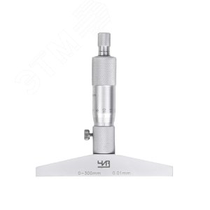 Глубиномер микрометрический ГМ-300 0.01 ЧИЗ* - измерительный инструмент для измерения глубины пазов и отверстий, а также высоты уступов деталей и узлов. Устройство микрометрического глубиномера (ГМ) похоже на устройство микрометра, но вместо скобы в конструкцию входит основание прямоугольной формы с измерительным стержнем. Предел измерений микрометрических глубиномеров – 300 мм. В комплект поставки инструмента входит комплект сменных стержней для обеспечения необходимого диапазона измерения. Модели, оснащенные цифровым отсчетным устройством (обозначаются как ГМЦ), более просты в использовании, а также имеют ряд дополнительных функциями, как установка на ноль в любой точке диапазона измерений, возможность подключения к ПК, переключение между метрической и дюймовой системами.
