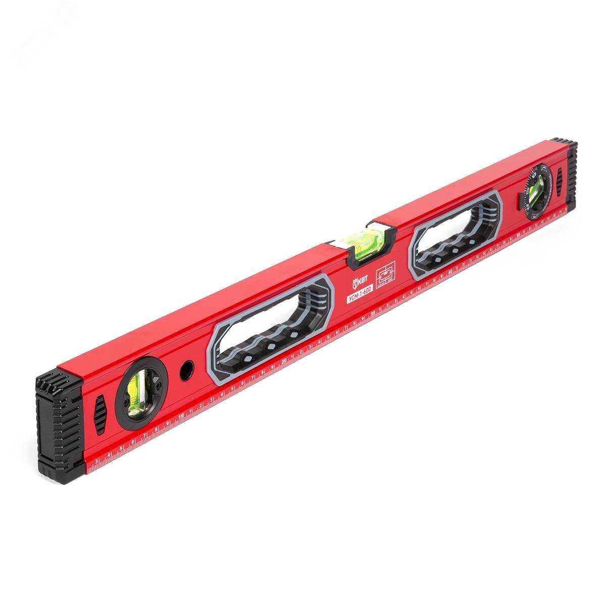 Пузырьковый уровень для измерения наклона горизонтальных и вертикальных поверхностей. 3 мерительных глазка - для установки по горизонтали (точность 0.5 мм/м), для установки по вертикали (точность 0.5 мм/м), поворотный для установки под углом до 45 градусов (точность 1 мм/м). Центральный глазок увеличенного размера. Сверхпрозрачные колбы с защитой от ударов и УФ-излучения с жидкостью зеленого цвета. Колбы уровня в прочных сплошных акриловых блоках. Коробчатый алюминиевый корпус толщиной 1 мм. Миллиметровая шкала по всей длине корпуса. Мощные магниты для установки уровня на металлических поверхностях. Двойная фрезеровка рабочей поверхности обеспечивает надежное прилегание и защиту от проскальзывания уровня. Торцевые заглушки из TPR-резины предохраняют инструмент в случае падения.