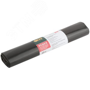 Мешки для строительного мусора, ПВД особопрочные, 60 л, 600х800 мм, толщина 70 мкм, 5 шт