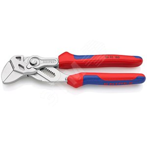 Клещи переставные - гаечный ключ 40 мм (1 1/2) L-180 мм Cr-V хромированные 2-компонентные рукоятки блистер Knipex KN-8605180SB