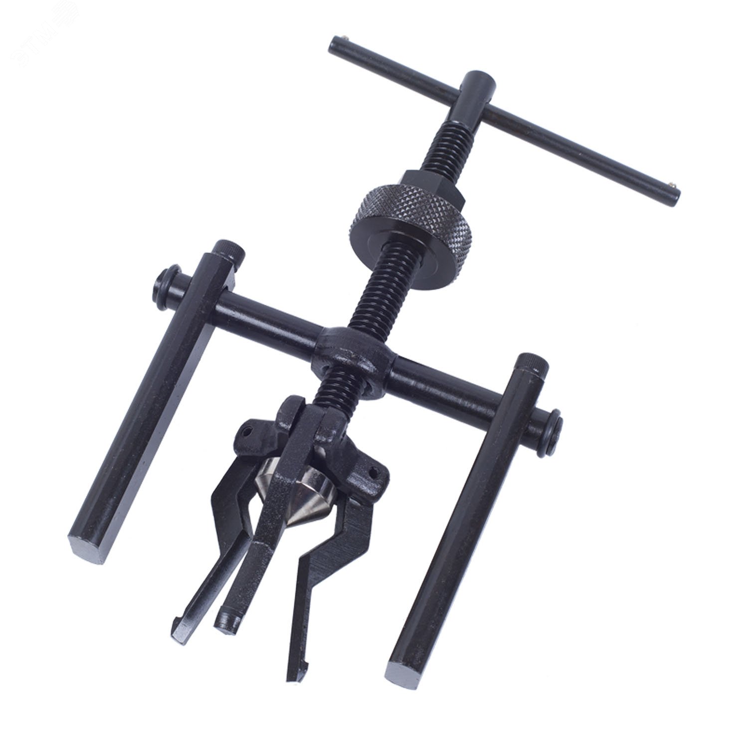 Съемник внутренних подшипников 104-18350Предназначен для работ с обоймами малых и средних подшипников. Идеально подходит для работ с подшипниками велосипедов, скутеров, мотоциклов и другой мототехники. Имеет несколько регулировок - по глубине, диаметру захвата, по ширине упоров. Особенности работы При работе с подшипниками средних размеров, на максимально допустимом диапазоне захвата губок, следует учитывать радиус закругления кромки внутренней обоймы подшипника – он не должен превышать величину уступов лапок съемника, заявленную в характеристиках. Если радиус кромки больше или сравним с данной величиной, работа может оказаться безрезультатной. В этом случае следует применять другой съемник, либо подложить под обойму, к примеру, шайбу подходящего диаметра. Характеристики -. Диапазон применения - 13-25 мм. Величина уступов - 1.4 мм.