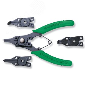 Щипцы универсальные со сменными рабочими частями для стопорных колец в наборе,160 мм, 6-50 мм, 4 предмета