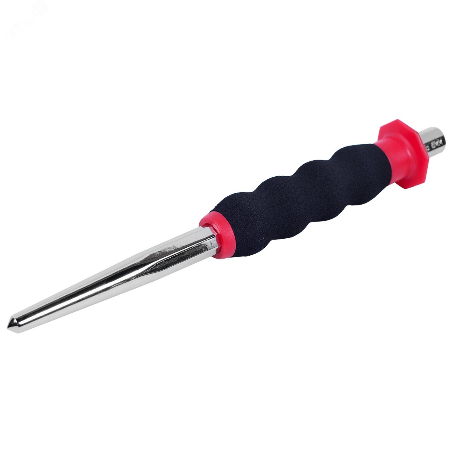 Кернер 6x185 мм, с протектором KING TONY 76106-74G. Кернер изготовлен из инструментальной легированной стали с добавлением молибдена. Специальные добавки, входящие в состав сплава, придают инструменту особую прочность и устойчивость к сколам, что не мало важно для безопасной работы. Полированное поверхность кернера защищает от воздействия влаги и грязи. Кернер снабжен удобной рукояткой, изготовленной из пластика из мягкого материала на основе резины. Такая рукоятка хорошо защищает руку от отдачи во время работы с кернером. Диаметр конусной части бойка - 6 мм Общая длина - 185 мм.