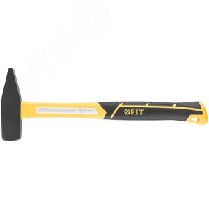 Молоток слесарный FIT IT применяется в слесарных, столярных, монтажных и прочих работах. Головка изготовлена из кованой закаленной инструментальной стали марки 45 с твердостью 50-58 HRC и выдерживает высокие ударные нагрузки. Глубина закалки бойка 4-5 мм обеспечивает высокую износостойкость. Черное порошковое покрытие головы предотвращает коррозию. Отверстие под темляк позволяет использовать молоток при высотных работах и хранить на подвесе. Широкая эргономичная рукоятка имеет противоскользящую резиновую вставку. Фибергласовый сердечник упрочняет конструкцию рукоятки. Прочное соединение головы с рукояткой обеспечивается полимерным клеем.