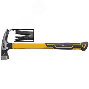Молоток-гвоздодер, фиберглассовая усиленная удлиненная ручка, дополн. гвоздодер, 27 мм, 370 гр.