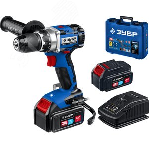 Дрель-шуруповерт бесщеточная 20В, 2 АКБ (4Ач), в кейсе, Профессионал