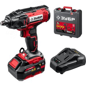 Незаменимый инструмент для автомобильной мастерской. Большой крутящий момент для сложных работ. Ударная функция позволяет затягивать крепеж большого диаметра и отворачивать приржавевшие метизы. Аккумуляторная батарея емкостью 4.0 А-ч для большей производительности. Литийионная технология ЗУБР нового поколения - увеличение производительности на 35%. электронная система защиты от перегрузки, перегрева и глубокой разрядки. отсутствие эффекта памяти. отсутствие потери мощности в процессе работы. Металлический корпус редуктора обеспечивает прочность при передаче большого крутящего момента. Патрон с квадратным хвостовиком позволяет устанавливать стандартные головки без переходников. Быстрозарядное интеллектуальное устройство с импульсной подачей тока для бережной и полной зарядки аккумулятора.